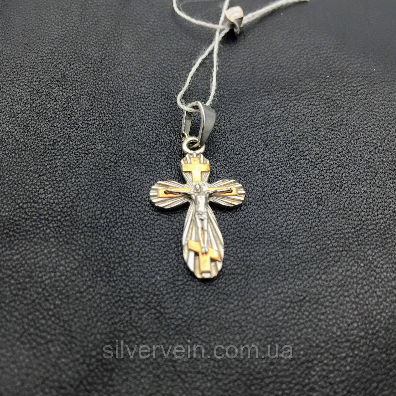 Срібний кулон-підвіс культиво із золотими пластинками Хрест. Вага 2,25 грамів. Пропонує до продажу ювелірний магазин "Сільвер Вен"