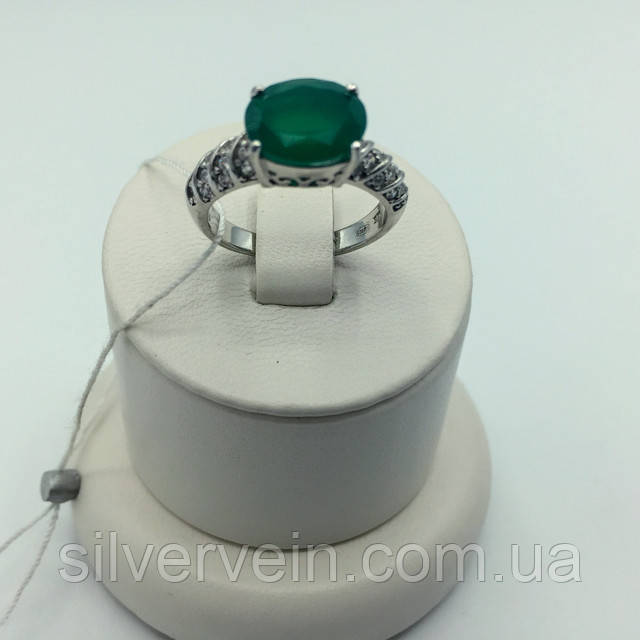 Срібне кільце зелений агат-фіаніт. Пропонує до продажу ювелірний магазин "Сільвер Вен"