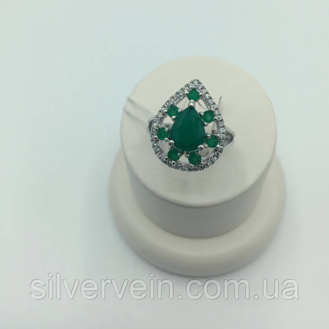Срібне кільце зелений агат фіаніт. Пропонує до продажу ювелірний магазин "Сільвер Вен"