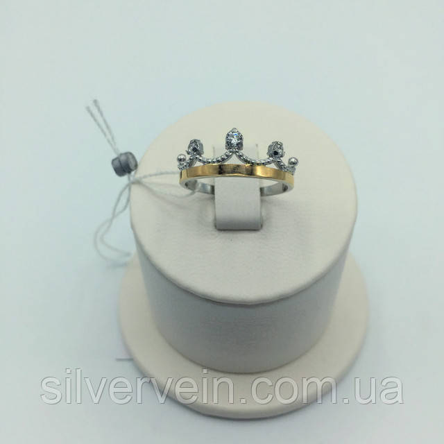 Срібне кільце із золотими пластинами Фіаніт Корона розмір15,5 Пропонує до продажу ювелірний магазин "Сільвер Вен"